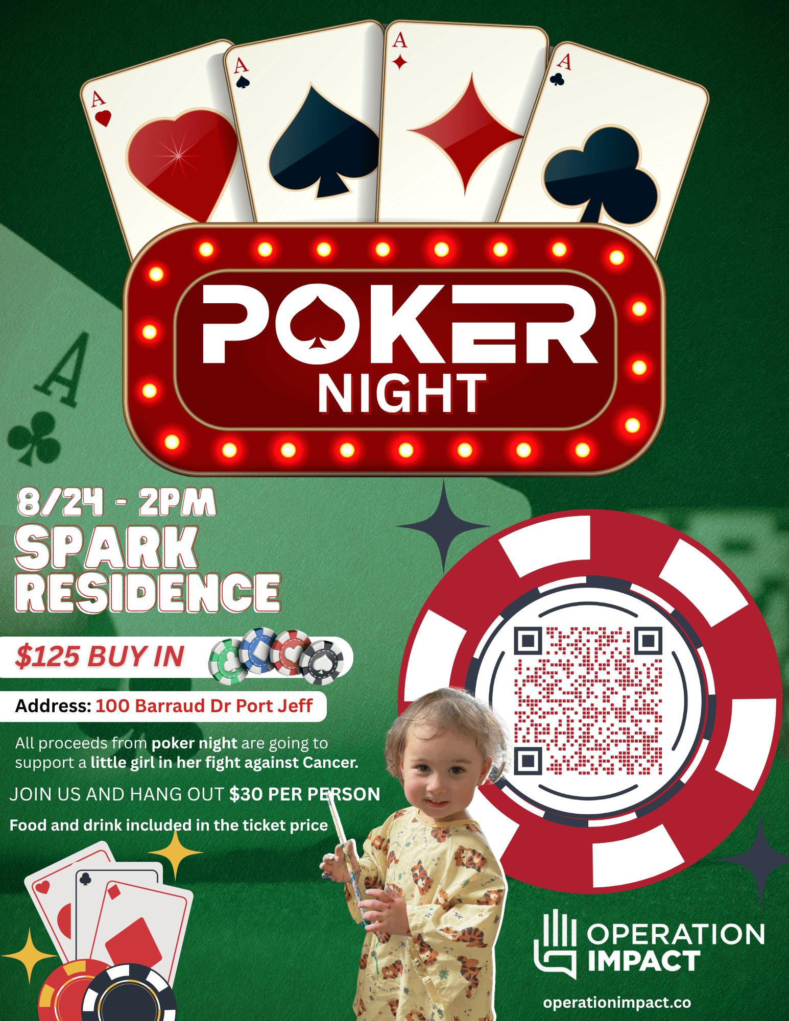 All proceeds from poker night are going to support a little girl in her fight against Cancer.